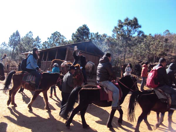 2012年12月17日,從麗江古城出發(fā),半個小時進入麗江觀音峽景區(qū),一個以山水、峽谷、森林、湖泊等自然景觀結(jié)合而成觀音峽。一路大家有說有笑的在山間的林蔭道上行進,興致頗高,處處可見關(guān)懷、互助的情景,到達第二索道區(qū)的時候,雖然大家已經(jīng)很累,可都沒放過路邊的景點,看到好的景點都瘋狂的占領(lǐng)拍照,都怕遺漏了美麗的景致,沒留下美麗的身影。